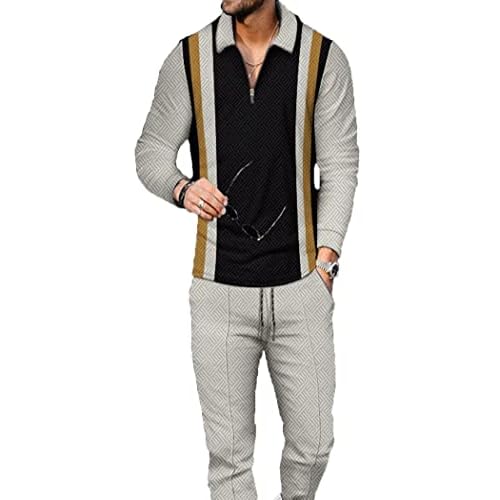Men’s Polo Track Suit Sets Long Sleeve Mens Outfits 2 Piece Fashion Sweatsuit Comfy Casual Set for Men