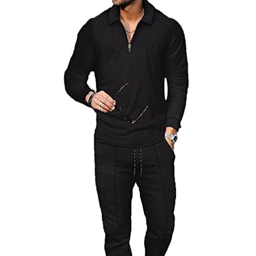 Size M Black Men’s Polo Track Suit Sets Long Sleeve Mens Outfits 2 Piece Fashion Sweatsuit Comfy Casual Set for Men