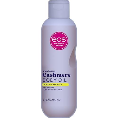eos Cashmere Body Oil, Vanilla Cashmere, 24 Hour Moisture, Plant-Based Squalane to Soothe, Soften And Smooth Dry Skin, Body Oil, 6 fl oz