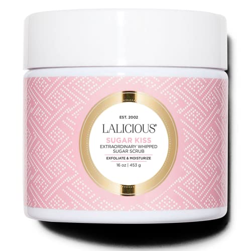 LALICIOUS Extraordinary Sugar Kiss Sugar Scrub, Exfoliating Body Scrub with Coconut Oil & Honey, Moisturizing Body Exfoliator for Glowing Radiant Hydrating Skin, Zero Greasy, No Parabens – 16oz