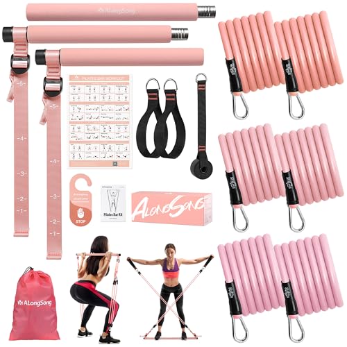 Pilates Bar Kit with Resistance Bands,Pilates Bar with Stackable Bands Workout Equipment for Legs,Hip,Waist and Arm,Exercise Fitness Equipment for Women & Men Home Gym Yoga Pilates
