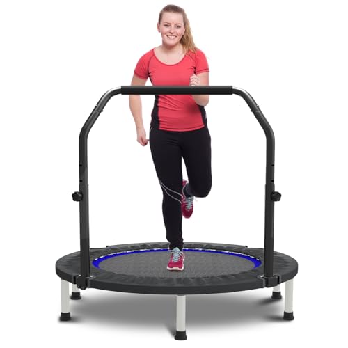 BCAN 40/48″ Foldable Mini Trampoline Max Load 330lbs/440lbs, Fitness Rebounder with Adjustable Foam Handle, Exercise Trampoline for Adults Indoor/Garden Workout