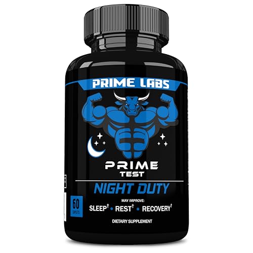 Prime Labs Night Duty – Nighttime Testosterone Booster & Sleep Support – PM Rest & Muscle Recovery Supplements – 60 Count