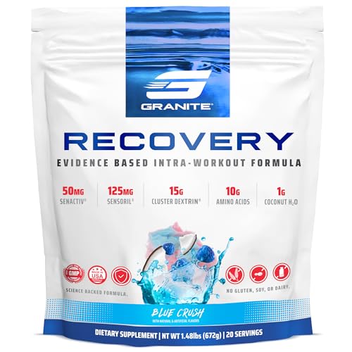 Granite Recovery Intra and Post-Workout Supplement, Blue Crush Flavor, with 10g Aminos, Electrolytes, Cluster Dextrin, & Sensoril, Supports Muscle Recovery & Growth (20 Servings)