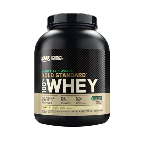 Optimum Nutrition Gold Standard 100% Whey Naturally Flavored Protein Powder 4.8 (Packaging May Vary), Vanilla, 76.8 Ounce
