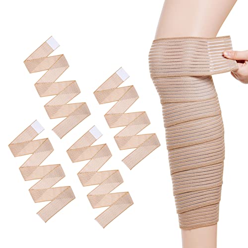 Rbenxia 4 Pieces of Khaki Elastic Calf Compression Bandage Adjustable Leg Compression Sleeve Knee Wraps Brace Support Bands for Stabilising Ligament, Joint Pain, Sport (180 cm)