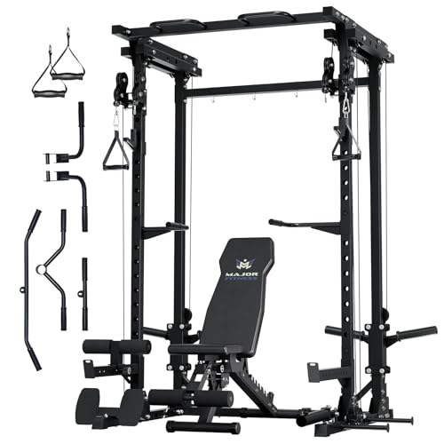 MAJOR FITNESS F22 Multi-Functional Power Rack—1600lbs Capacity All-in-One Squat Rack with Dual Pulley System for Home Gym Strength Training
