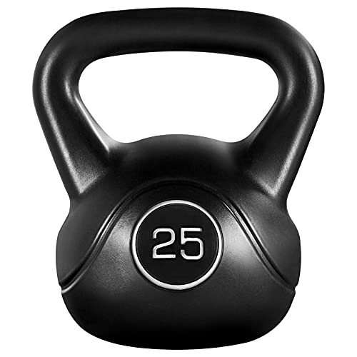 Yaheetech 25lbs Kettlebell Weight w/HDPE Coated & Wide Flat Base, Kettle Bell Weights w/Ergonomic Handle for Home Gym Fitness Workout Bodybuilding Weight Lifting, Black