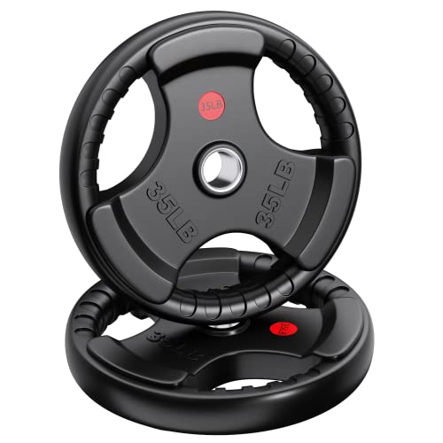 XDDIAS Rubber Weight Plates 2-Inch Olympic Grip Plate in Pairs or Single for Strength Training, Weightlifting and Bodybuilding in Home & Gym, Solid Cast Iron Weight Plates for Barbell, 10LB-45LB