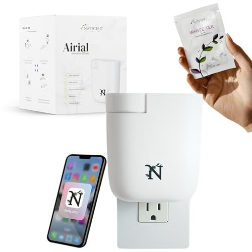Airial Plug-in Essential Oil Diffuser with White Tea Sample, Waterless Cold-Air Scent Diffusers for Home or Office, Bluetooth & App Control, Adjustable Intensity Covers Up to 300 Sq. Ft