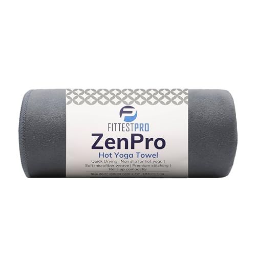 Fittest Pro Non-Slip Hot Yoga Towel with Super-Absorbent Soft Suede Microfiber in Many Colors, for Bikram Pilates and Yoga Mats. (72.00 x 26.50) Nimbus Grey