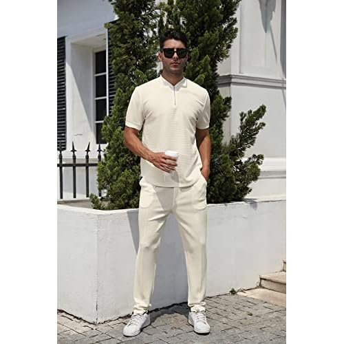 FZNHQL Fashion Men’s Tracksuits 2 Piece Casual Athletic Jogging Outfits Short/Long Sleeve Track Suits for Men Set
