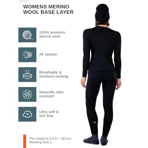 Merino.tech Merino Wool Base Layer Women Set – Heavyweight, Lite, Midweight Merino Thermal Underwear For Women Top, Bottom