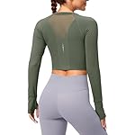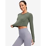SANTINY Women’s Long Sleeve Crop Workout Tops Slim Fit Gym Yoga Running Shirts for Women