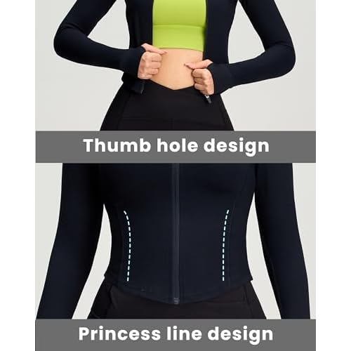 Women BBL Jacket Full Zip UP Workout Athletic Cropped Jacket wIth Thumb Holes Running Yoga Sportswear