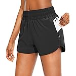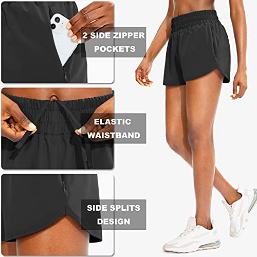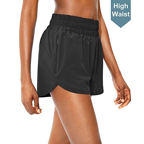 SANTINY Women’s Running Shorts with Zip Pockets High Waisted Athletic Workout Gym Shorts for Women with Liner