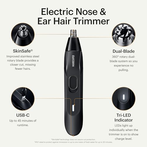 UNPLUG. UNHAIR: Sniffing out stray hairs on the go has never been easier. With a USB-C rechargeable battery, this nose and ear hair trimmer operates on its own power supply with up to 45 minutes of runtime.