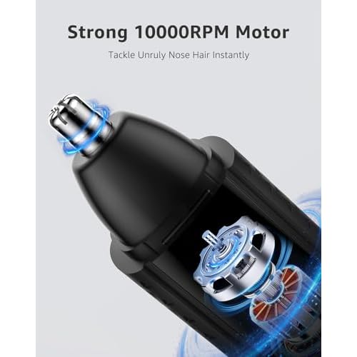 Powerful and Efficient Electric Nose and Ear Hair Trimmer: Achieve precise grooming with the dual-edge spinning blades that spin at an impressive 10,000 RPM. Say goodbye to the hassle of traditional trimmers and enjoy a faster, smoother, and more effective grooming experience.