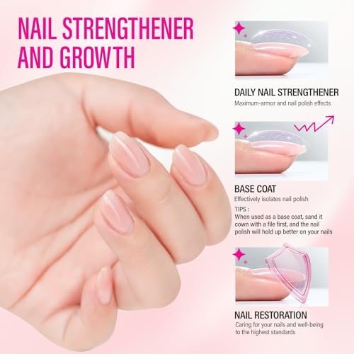 Nail Strengthener for Women: 8 in 1 Soft Pink Natural Nail Hardener Extra Strong and Growth – Nail Polish Hardener Ridge Filler Concealer for Weak and Damaged Nails 15ml