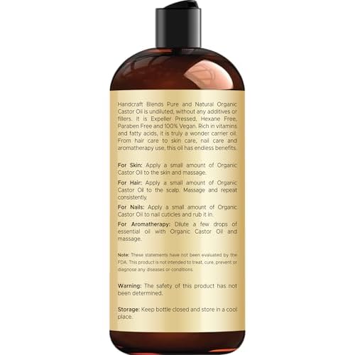 Handcraft Blends Organic Castor Oil – 16 Fl Oz – 100% Pure and Natural – Premium Grade Carrier Oil for Hair Growth, Eyelashes and Eyebrows – Hair and Body – Expeller-Pressed & Hexane-Free