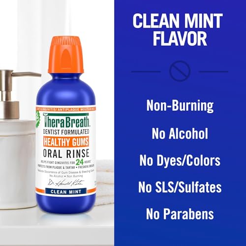TheraBreath Healthy Gums Mouthwash Clean Mint, Antigingivitis, Dentist Formulated, 16 Fl Oz (2-Pack)