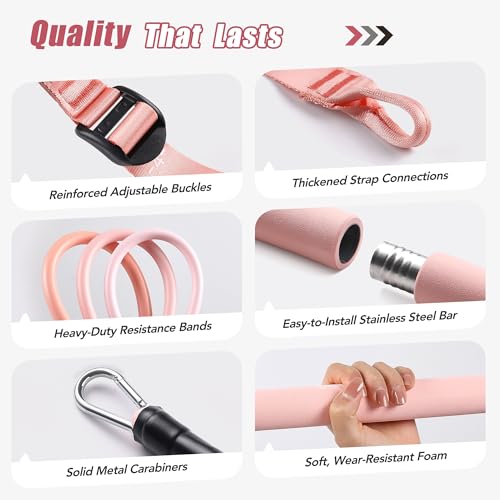 【2025 Complete Training System】Professional-grade detachable stainless steel pilates equipment with 3 pairs of tear-resistant latex bands (total 180LB resistance). Includes non-slip foot straps and door anchor for 30+ workout variations at home, gym, or office – ideal for pilates, strength training, and yoga fusion.