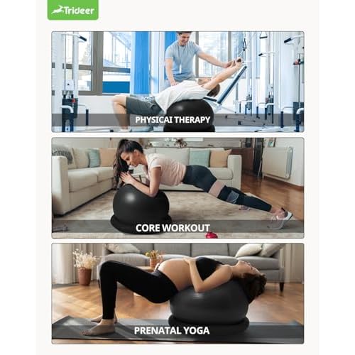 Trideer Ball Chair Yoga Ball Chair Exercise Ball Chair with Base for Home Office Desk, Stability Ball & Fitness Ball Seat to Relieve Back Pain, Home Gym Workout Ball for Abs, Pregnancy Ball with Pump