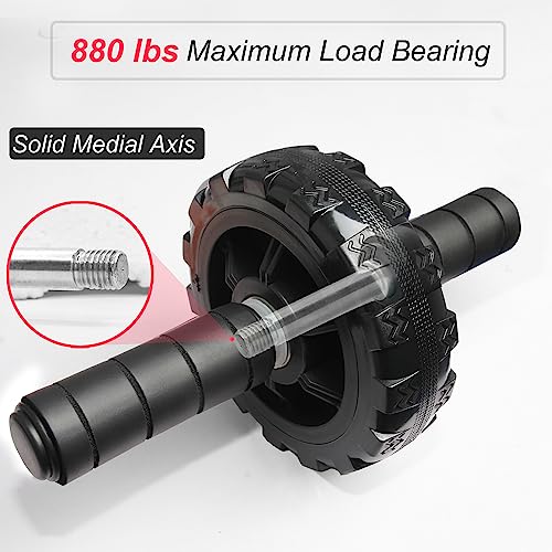 【Supports Max 880 lbs】This abs roller features a solid steel shaft, which supports greater weight up to 880 lbs (others only 300-600lbs) without deforming. Compared to other Abs rollers made of plastic and hollow metal, solid steel axle abs rollers are strong and durable, better suited to your core workouts, and you can use them for years. It is the perfect training equipment for your home gym!