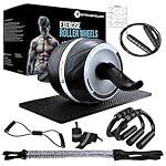 Ab Roller Wheel Automatic Rebound, 9-In-1 Kit Workout fitness Equipment & Abs roller Exercise Abdominale & Home Gym | Jump Rope, Push-Up Bar, Resistance Bands, Knee Mat..