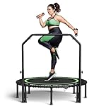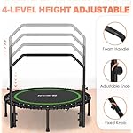 4-level Adjustable Handle: The fitness trampoline equipment with a 4-level height adjustable handlebar raged from 2’6″ to 3’5″ (on the mat), Jump with confidence
