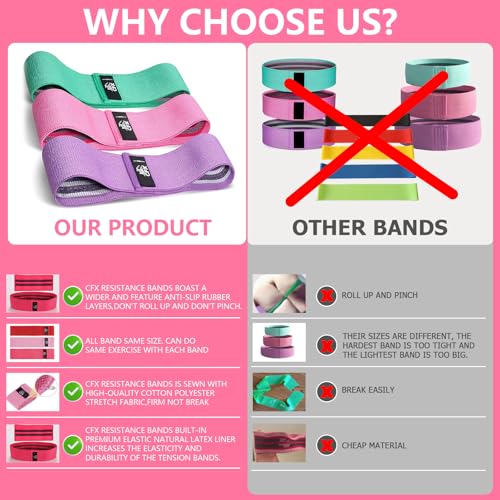 CFX Resistance Bands Set, Exercise Bands with Non-Slip Design for HIPS & Glutes, 3 Levels Workout Bands for Women and Men, Booty Bands for Home Fitness, Yoga, Pilates