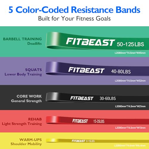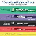 FitBeast Resistance Bands Set, 6 Different Levels, Pull Up Assist Bands for Strength Training, Crossfit, Powerlifting, Muscle Toning, Yoga, Mobility Exercises, Rehabilitation, Full-Body Workout