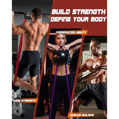 Resistance Bands Set – Pull Up Bands for Men Women, Exercise Bands Resistance with Door Anchor, Training Poster & Pouch for Body Stretching, Pull Up Assist