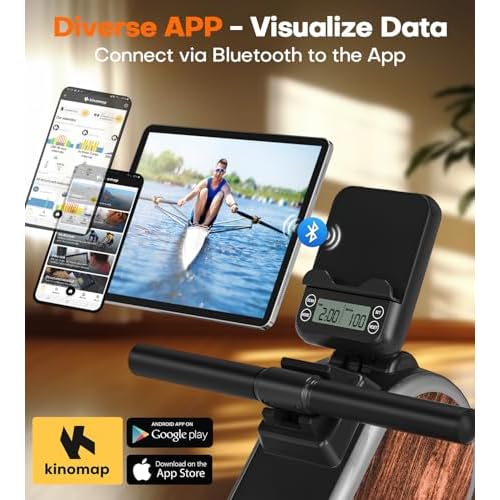 Bluetooth App Compatible: Connect your smartphone or device to the rowing machine via Bluetooth, fully master real-time rowing data! This rowing machine is also compatible with the KINOMAP APP, which allows you to immerse yourself in the splash of nature while rowing at home! You can also visit professional rowing training courses, discover new challenges and improve yourself!
