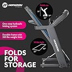 FOLDABLE TREADMILL: The Horizon Studio Series folding treadmills feature a rugged frame built for performance and durability. Effortlessly store between workouts with a one-step FeatherLight hydraulic folding system.