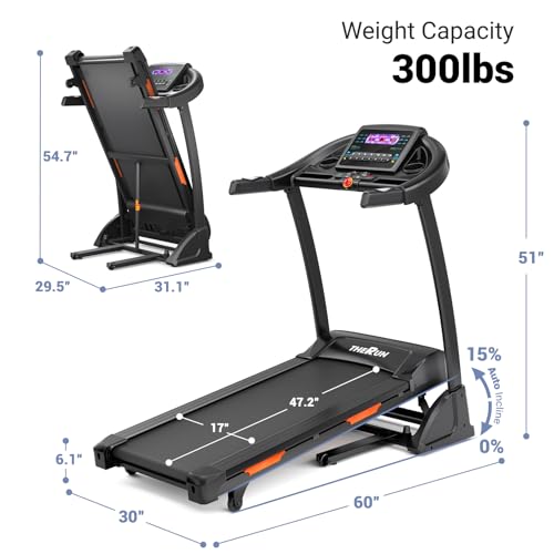 THERUN Incline Treadmill for Running and Walking, 300 lbs Weight Capacity Folding Treadmill with 0-15% Auto Incline, Wide Belt, 3.5HP, App, Heart Rate
