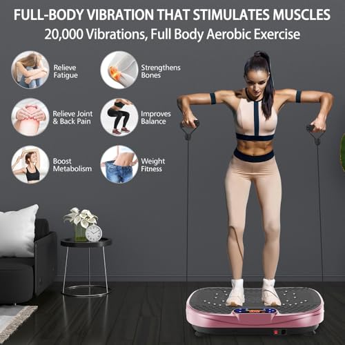 4.Rich Functional: Adjustable vibration speed (1 to 120), with 2 resistance workout bands, can exercise the whole body at the same time. Offering a variety of exercise modes, allows you to try different vibration exercises, With this workout machine, you can have your routine exercise done in only 10 minutes every day. You’ll get a better shape.
