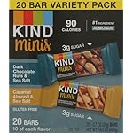 KIND Minis Snack Bars, Dark Chocolate Nuts & Sea Salt and Caramel Almond & Sea Salt, 3g Sugar, Gluten Free Bars, Variety Pack, 0.7 OZ, (20 Count)