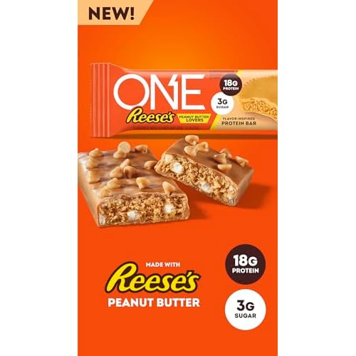 ONE Protein Bars, Reese’s Peanut Butter Lovers, Gluten Free with 18g Protein and 3g Sugar, Pantry Staples, 2.12 oz (12 Count)