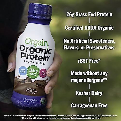 Orgain Organic Protein Shake, Grass Fed Dairy, Creamy Chocolate – 26g High Protein Whey Shake, Ready to Drink, Gluten Free, No Soy Ingredients, No Sugar Added, 14 Fl Oz (Pack of 12)