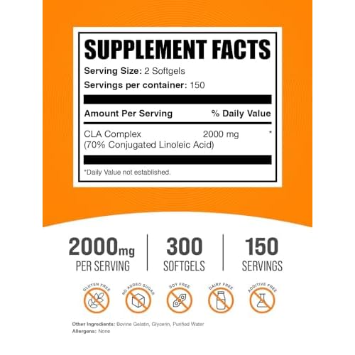 BulkSupplements.com Conjugated Linoleic Acid Softgels – CLA Supplements, CLA 2000mg, CLA Safflower Capsules, CLA Pills – 2 CLA Softgels per Serving, 150-Day Supply, 300 Softgels