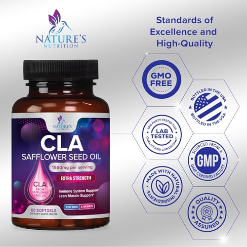 CLA by Nature’s Nutrition: Our conjugated linoleic acid for women and men pills safflower oil supplements supplement best pastillas rapido pill mujer 1000mg abdominal vitamins vitamin womens stomach suplementos rapid natural nature natures softgels plant based max seed mg lean muscle support