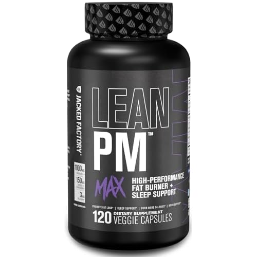 Jacked Factory Lean PM Max – High-Performance Weight Loss, Sleep Support, Fat Burner, & Appetite Suppressant for Men and Women w/Melatonin, Magnesium, Carnipure, & Ashwagandha – 120 Diet Pills