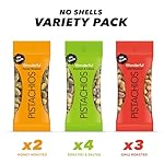 FLAVOR: Variety Pack – Each box of No Shell Wonderful Pistachios includes (9) 0.75 ounce bags of the following flavors: 4 – Roasted and Salted, 3 – Chili Roasted, and 2 – Honey Roasted. With no shell, these pistachios are perfect for cooking, great for snacking, and a tasty, crunchy salad topper.