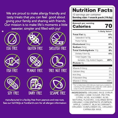 YumEarth’s sweet treats are free from the top 8 common allergens and are USDA Organic Certified, Non-GMO Certified, gluten free