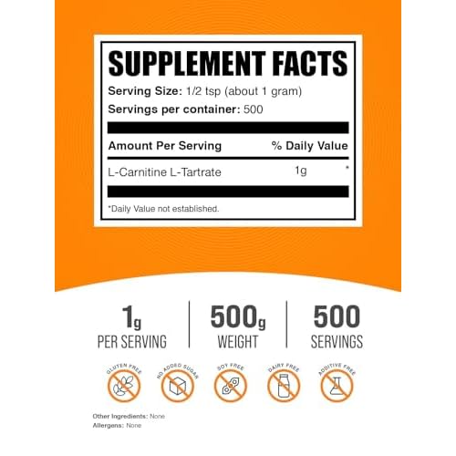 BulkSupplements.com L-Carnitine Tartrate Powder – Amino Acid Powder, Carnitine Supplement – Unflavored & Gluten Free, 1g per Serving, 500g (1.1 lbs) (Pack of 1)