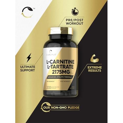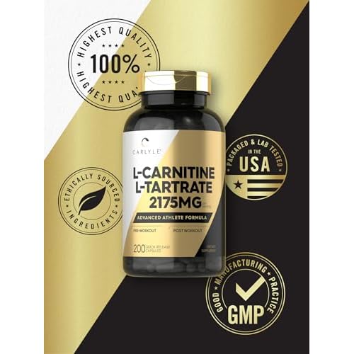 Carlyle L Carnitine Tartrate 2175mg | 200 Capsules | Advanced Athlete Formula | Workout Supplement | As L-Carnitine L-Tartrate | Non-GMO, Gluten Free
