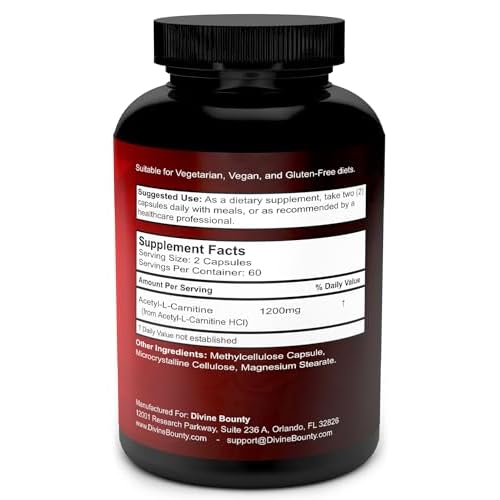 Divine Bounty Acetyl L-Carnitine Capsules 1200mg Per Serving – L Carnitine Supplement 120 Vegetarian Capsules