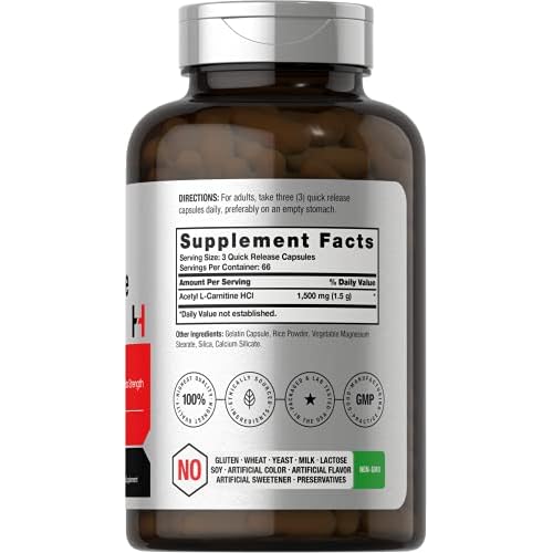 Horbäach Acetyl L-Carnitine 1500mg | 200 Capsules | Extra Strength Supplement | Non-GMO & Gluten Free
