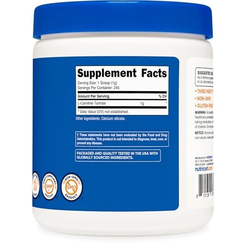 Nutricost L-Carnitine Tartrate Powder (250 Grams) – 1 Gram per Serving, 245 Servings